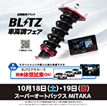 開催日:10月18日(土)・19日(日) サスペンションの乗り心地を体感できる BLITZデモカーで同乗体感試乗OK!(要予約) 取り...